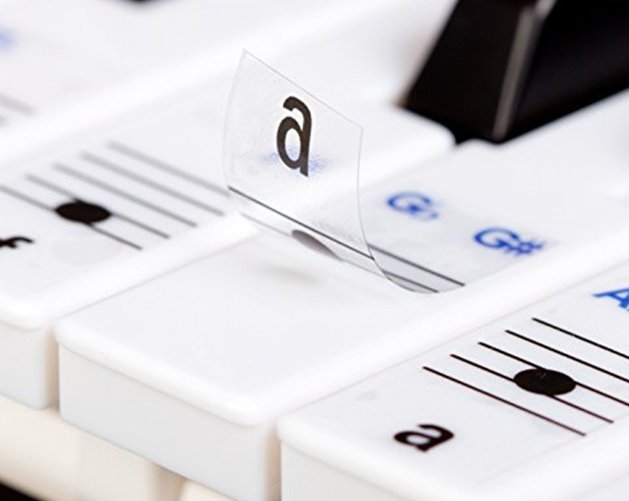 Gratis Pianostickers, die je op de toetsen van je piano kunt plakken. Daarmee leer je extra snel de namen van de toetsen, maar ook waar de noot op de notenbalk staat bij die toets. Op die manier leer je extra gemakkelijk en snel piano spelen!